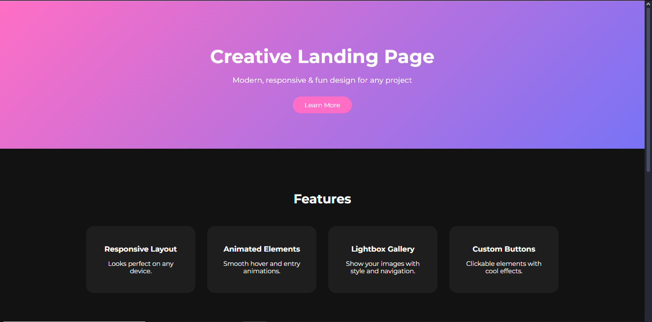 A modern, fully responsive HTML template perfect for personal portfolios, landing pages, or small web projects.